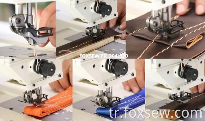 Özellikler: Uzun dikiş uzunlukları ve kalın iplikler ile dikiş bile, FX-204-370, mekanik parçalarının son derece sağlam tasarımı ve gelişmiş besleme hareketi için mükemmel bir dikiş deseni ve eşit derecede sıkı dikiş oluşumu ile karakterizedir. Ağır silindirik servis kancalı bu makine, deri ürünleri, özel tekstil, kanepe, mobilya, araba koltuğu yastığı, araba döşemesi, çadır, koşum, eyer ve dekorasyon endüstrisi üretimi gibi aşırı iplik ve malzemeyi işlemek için tasarlanmıştır.